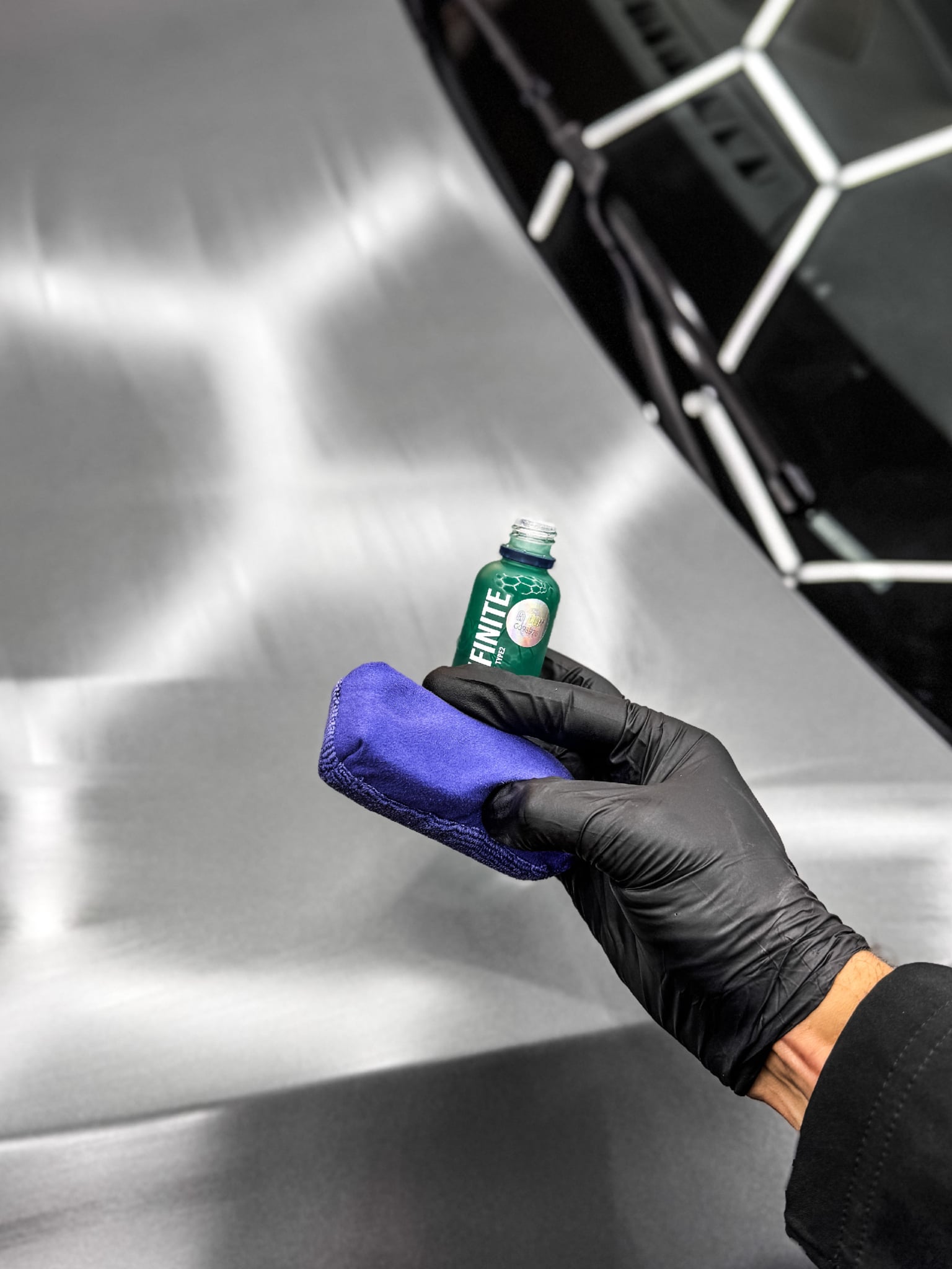- Application du traitement céramique GYEON INFINITE, adapté aux finitions satinées/mates