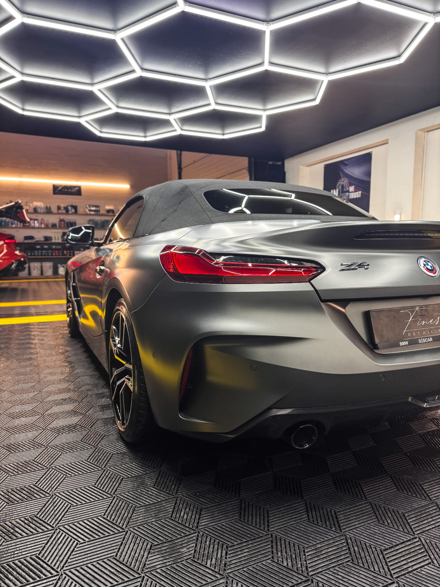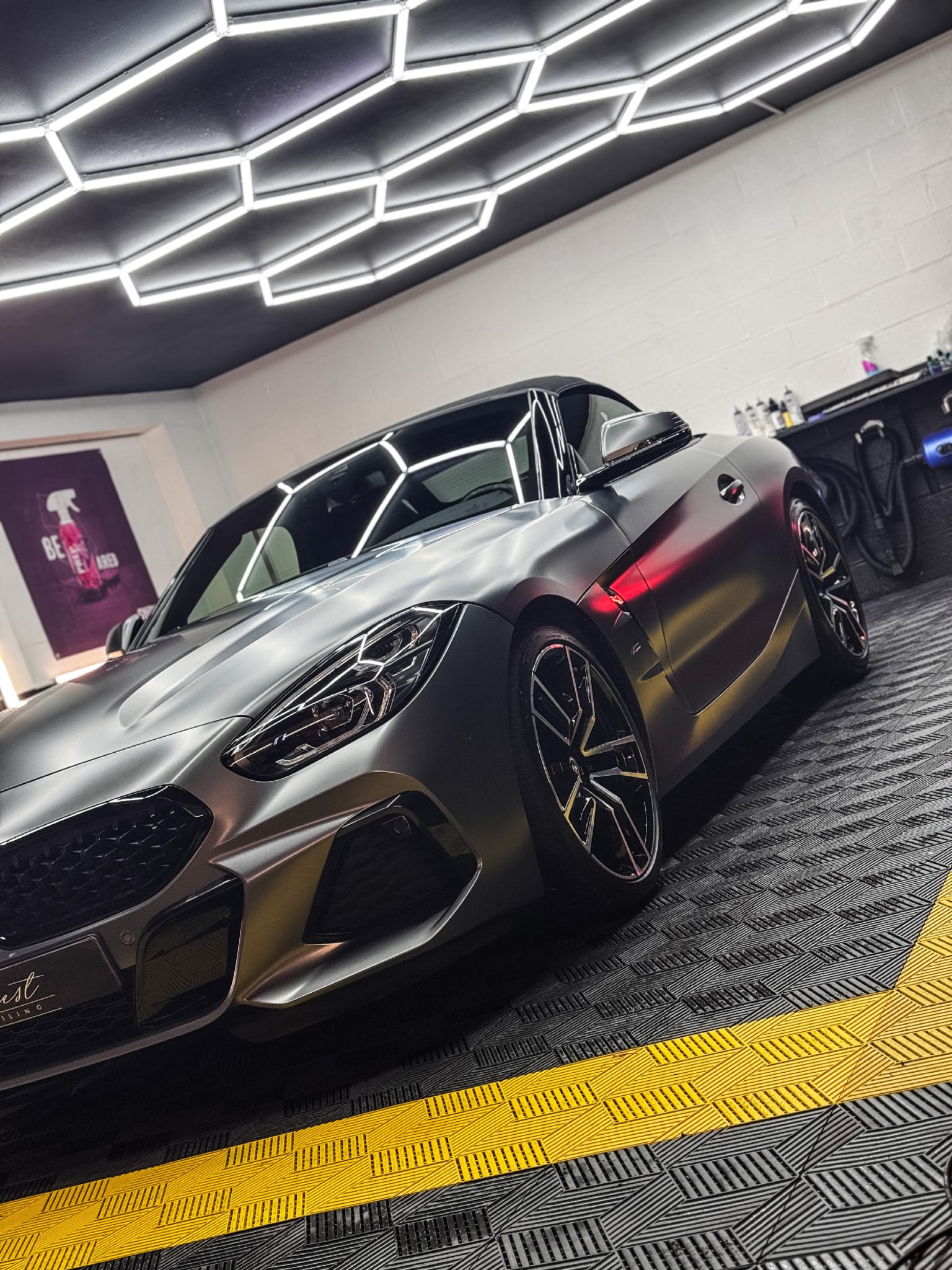Traitement haut de gamme réalisé dans notre studio à Verviers (Belgique) pour préserver durablement la finition mate d’une BMW Z4 Frozen Grey Matte, tout en facilitant son entretien au quotidien.