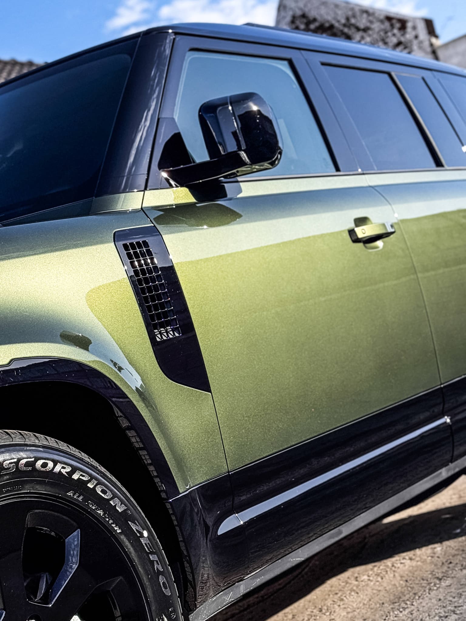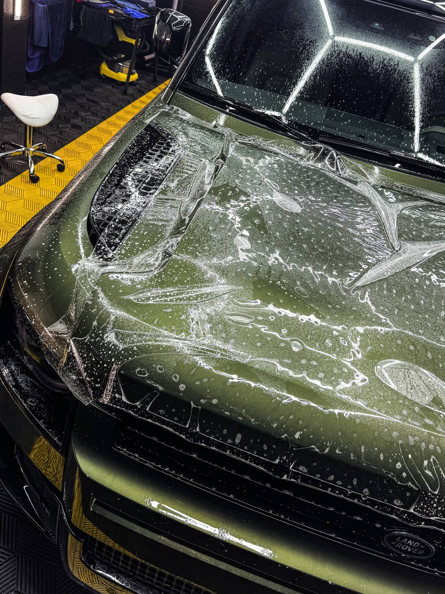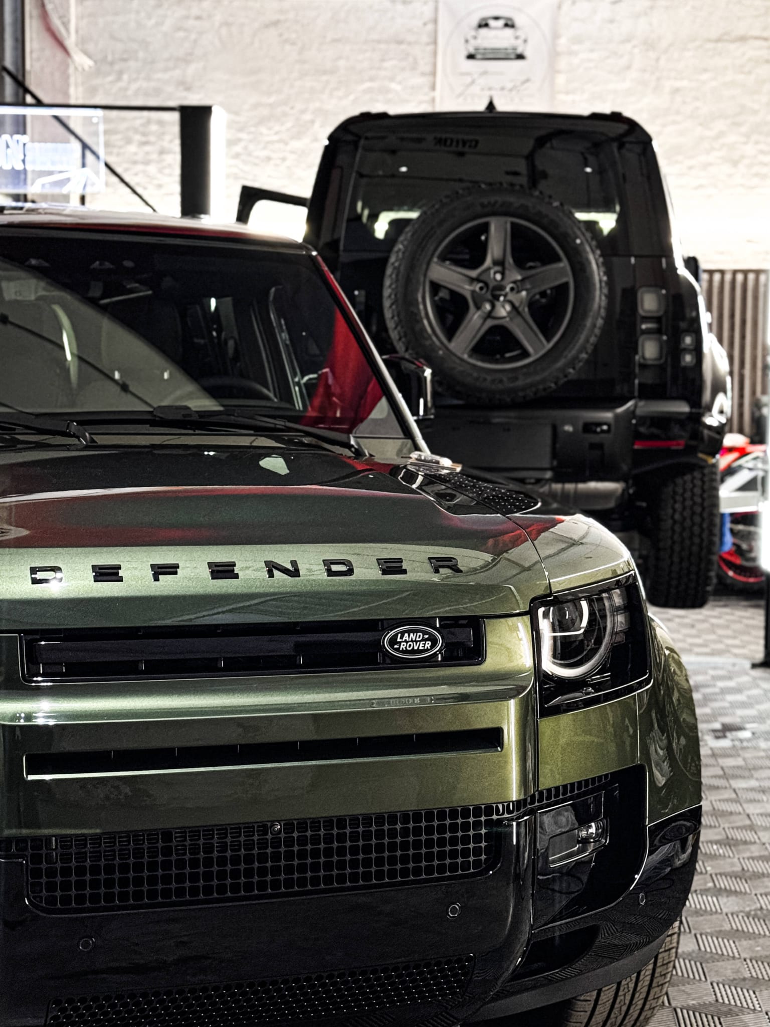 Deux Land Rover Defender 110 neufs préparés et protégés simultanément au studio.